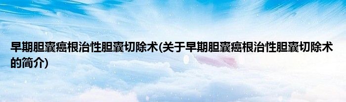 本文关于早期胆囊癌根治性胆囊切除术的简介就讲解完毕,希望对大家有所帮助。