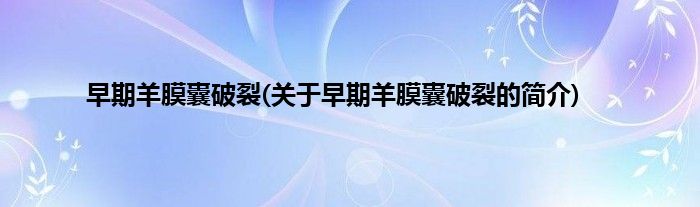 本文关于早期羊膜囊破裂的简介就讲解完毕,希望对大家有所帮助。
