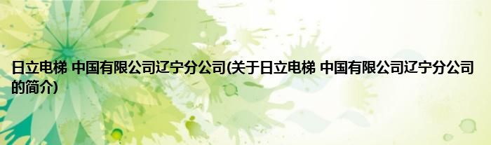 大家好,日立电梯 中国有限公司辽宁分公司,关于日立电梯 中国有限公司辽宁分公司的简介很多人还不知道,现在让我们一起来看看吧!