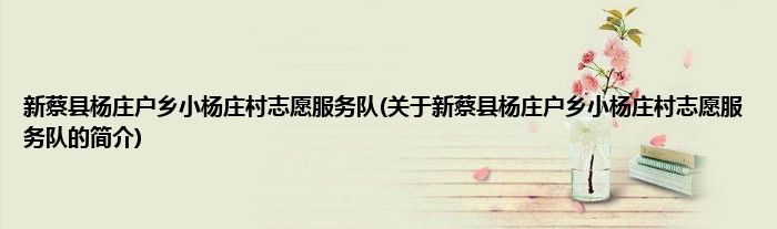 大家好,新蔡县杨庄户乡小杨庄村志愿服务队,关于新蔡县杨庄户乡小杨庄村志愿服务队的简介很多人还不知道,现在让我们一起来看看吧!