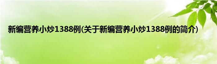 本文关于新编营养小炒1388例的简介就讲解完毕,希望对大家有所帮助。