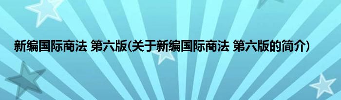 本文关于新编国际商法 第六版的简介就讲解完毕,希望对大家有所帮助。