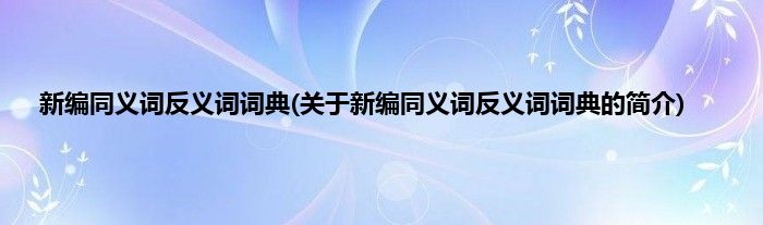 1、 《新编同义词反义词词典》是2004年6月时代文艺出版社出版的词典。
