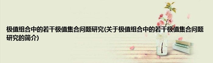 极值组合中的若干极值集合问题研究(关于极值组合中的若干极值集合问题研究的简介)