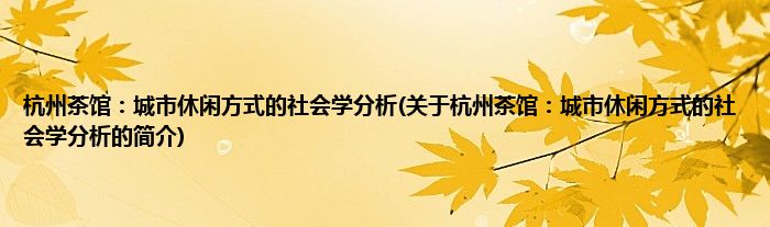 本文关于杭州茶馆:城市休闲方式的社会学分析的简介就讲解完毕,希望对大家有所帮助。