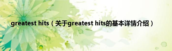 本文关于greatest hits的基本详情介绍就讲解完毕,希望对大家有所帮助。
