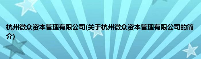 本文关于杭州微众资本管理有限公司的简介就讲解完毕,希望对大家有所帮助。