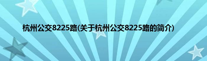 本文关于杭州公交8225路的简介就讲解完毕,希望对大家有所帮助。