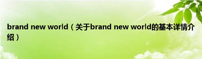 本文关于brand new world的基本详情介绍就讲解完毕,希望对大家有所帮助。
