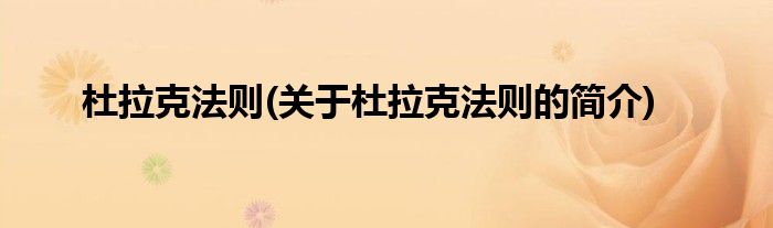 杜拉克法则(关于杜拉克法则的简介)