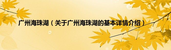 本文关于广州海珠湖的基本详情介绍就讲解完毕,希望对大家有所帮助。