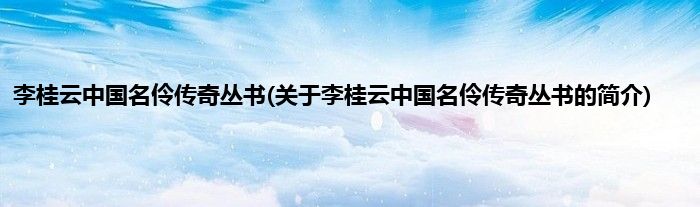 本文关于李桂云中国名伶传奇丛书的简介就讲解完毕,希望对大家有所帮助。