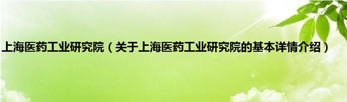 本文关于上海医药工业研究院的基本详情介绍就讲解完毕,希望对大家有所帮助。