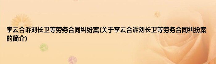 本文关于李云合诉刘长卫等劳务合同纠纷案的简介就讲解完毕,希望对大家有所帮助。