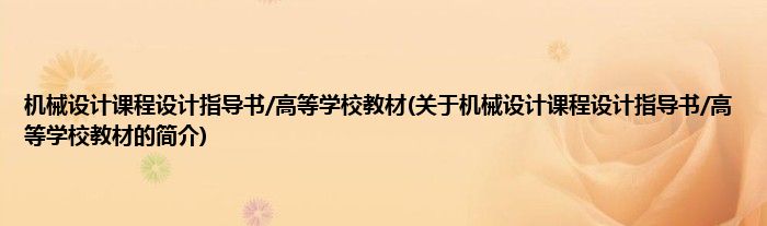 机械设计课程设计指导书/高等学校教材(关于机械设计课程设计指导书/高等学校教材的简介)
