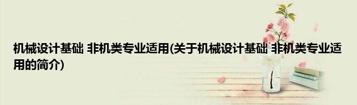 本文关于机械设计基础 非机类专业适用的简介就讲解完毕,希望对大家有所帮助。