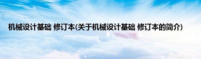 本文关于机械设计基础 修订本的简介就讲解完毕,希望对大家有所帮助。