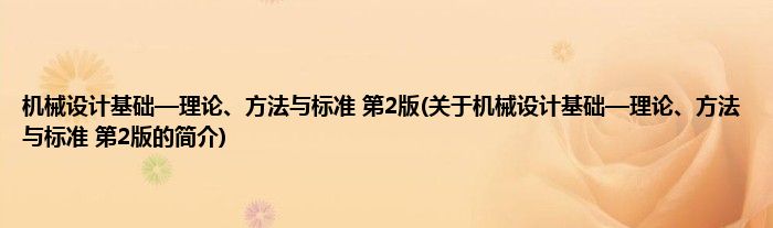 1、 《机械设计基础—理论、方法与标准(第2版)》是2018年清华大学出版社出版的图书。