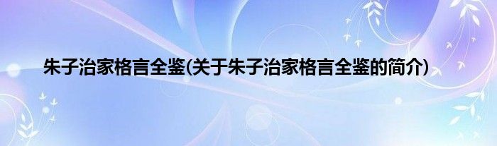 本文关于朱子治家格言全鉴的简介就讲解完毕,希望对大家有所帮助。