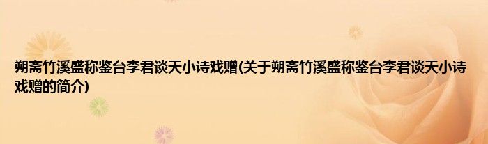 本文关于朔斋竹溪盛称鉴台李君谈天小诗戏赠的简介就讲解完毕,希望对大家有所帮助。