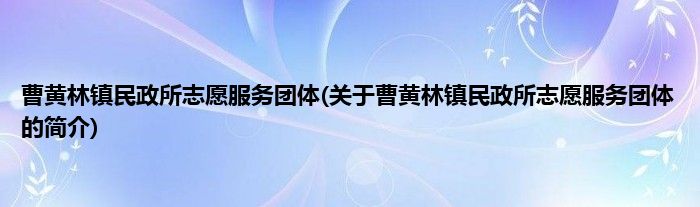 本文关于曹黄林镇民政所志愿服务团体的简介就讲解完毕,希望对大家有所帮助。