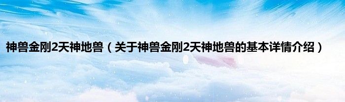 神兽金刚2天神地兽(关于神兽金刚2天神地兽的基本详情介绍)