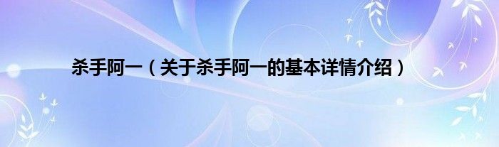 本文关于杀手阿一的基本详情介绍就讲解完毕,希望对大家有所帮助。