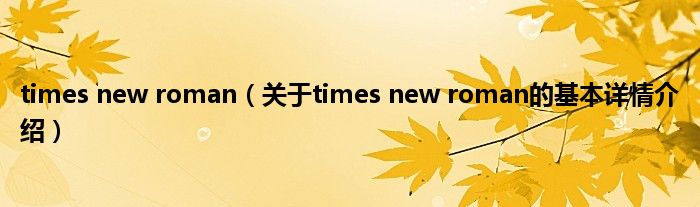 本文关于times new roman的基本详情介绍就讲解完毕,希望对大家有所帮助。