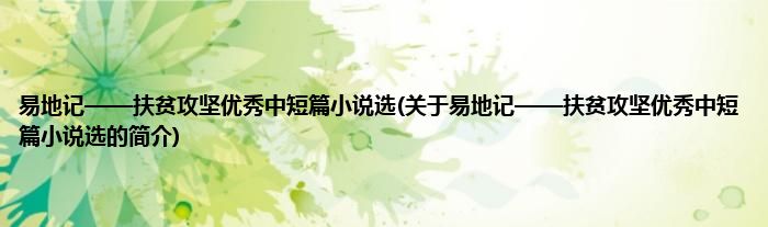 本文关于易地记——扶贫攻坚优秀中短篇小说选的简介就讲解完毕,希望对大家有所帮助。