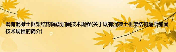 本文关于既有混凝土框架结构隔震加固技术规程的简介就讲解完毕,希望对大家有所帮助。