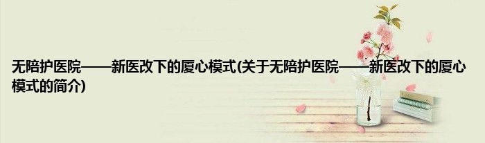 本文关于无陪护医院——新医改下的厦心模式的简介就讲解完毕,希望对大家有所帮助。