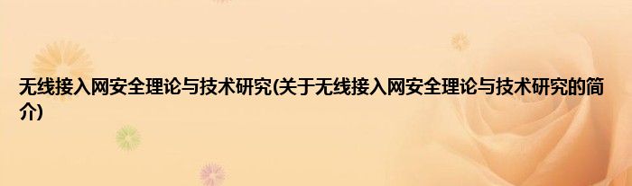 本文关于无线接入网安全理论与技术研究的简介就讲解完毕,希望对大家有所帮助。