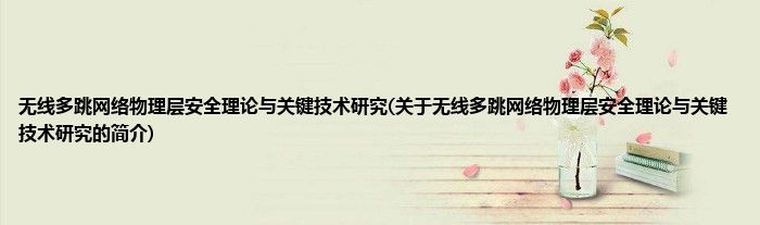 大家好,无线多跳网络物理层安全理论与关键技术研究,关于无线多跳网络物理层安全理论与关键技术研究的简介很多人还不知道,现在让我们一起来看看吧!