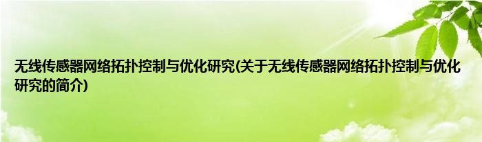 大家好,无线传感器网络拓扑控制与优化研究,关于无线传感器网络拓扑控制与优化研究的简介很多人还不知道,现在让我们一起来看看吧!