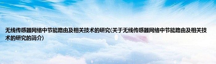 大家好,无线传感器网络中节能路由及相关技术的研究,关于无线传感器网络中节能路由及相关技术的研究的简介很多人还不知道,现在让我们一起来看看吧!