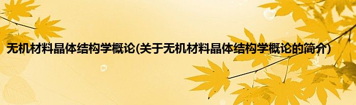 本文关于无机材料晶体结构学概论的简介就讲解完毕,希望对大家有所帮助。