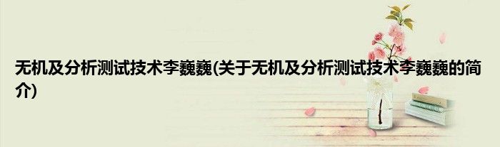 大家好,无机及分析测试技术李巍巍,关于无机及分析测试技术李巍巍的简介很多人还不知道,现在让我们一起来看看吧!