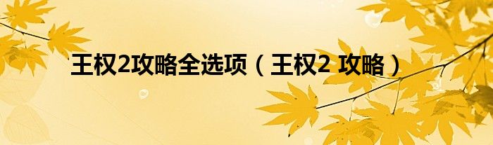 大家好,精选小编来为大家解答以上问题。王权2攻略全选项,王权2 攻略很多人还不知道,现在让我们一起来看看吧!