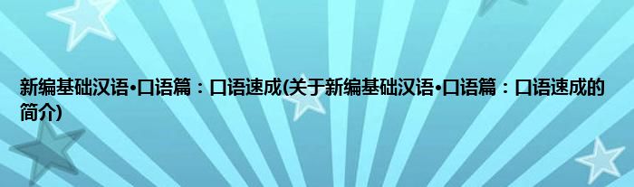 本文关于新编基础汉语·口语篇:口语速成的简介就讲解完毕,希望对大家有所帮助。