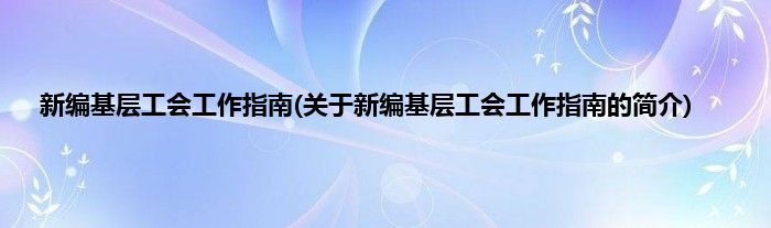大家好,新编基层工会工作指南,关于新编基层工会工作指南的简介很多人还不知道,现在让我们一起来看看吧!