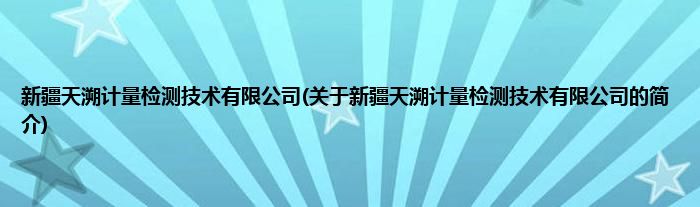 本文关于新疆天溯计量检测技术有限公司的简介就讲解完毕,希望对大家有所帮助。
