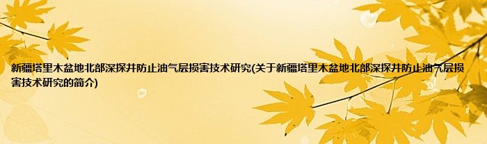 新疆塔里木盆地北部深探井防止油气层损害技术研究(关于新疆塔里木盆地北部深探井防止油气层损害技术研究的简介)