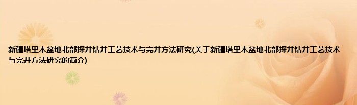 新疆塔里木盆地北部探井钻井工艺技术与完井方法研究(关于新疆塔里木盆地北部探井钻井工艺技术与完井方法研究的简介)