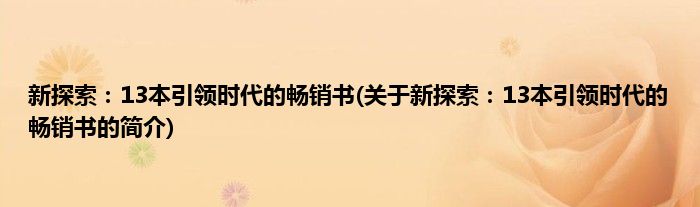 本文关于新探索:13本引领时代的畅销书的简介就讲解完毕,希望对大家有所帮助。