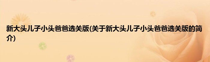 大家好,新大头儿子小头爸爸选关版,关于新大头儿子小头爸爸选关版的简介很多人还不知道,现在让我们一起来看看吧!