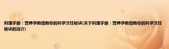本文关于料理手册:营养学教授教你的科学烹饪秘诀的简介就讲解完毕,希望对大家有所帮助。