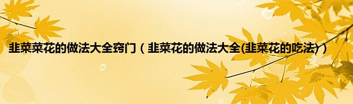 大家好,小科来为大家解答以上问题。韭菜菜花的做法大全窍门,韭菜花的做法大全(韭菜花的吃法)很多人还不知道,现在让我们一起来看看吧!