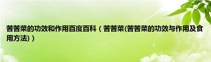 大家好,小科来为大家解答以上问题。苦苦菜的功效和作用百度百科,苦苦菜(苦苦菜的功效与作用及食用方法)很多人还不知道,现在让我们一起来看看吧!