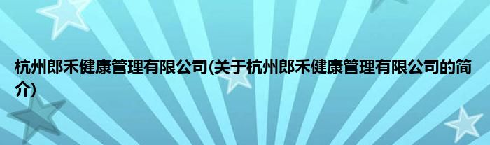本文关于杭州郎禾健康管理有限公司的简介就讲解完毕,希望对大家有所帮助。