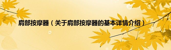 本文关于肩部按摩器的基本详情介绍就讲解完毕,希望对大家有所帮助。